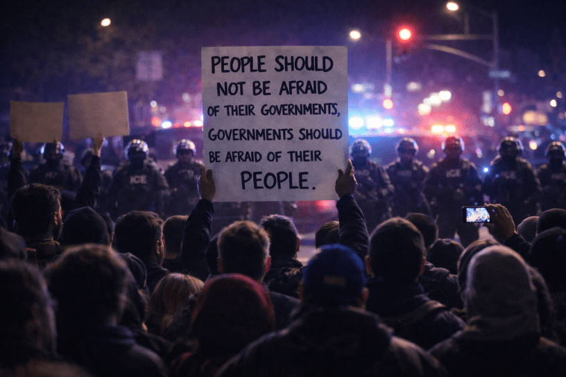 That isn’t a call for chaos. It’s a description of democratic balance. In a functioning republic, fear flows upward—toward elected officials who know the public can remove them, investigate them, defund them, and prosecute wrongdoing. When fear is pushed downward—toward ordinary people—the relationship flips. Citizens become subjects. The state becomes an idol. Rights become permissions.