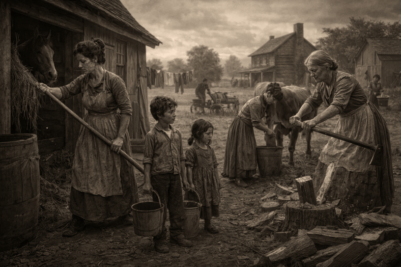 The departure of men did not produce instant collapse. What it produced was a vacuum that women, children, and the elderly were forced to fill. Farms still needed planting. Shops still needed tending. Debts still came due. Animals still needed feeding. The calendar did not pause to acknowledge sacrifice.