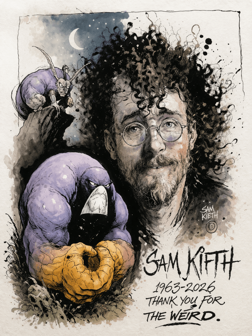 Sam Kieth, an American comic book artist and writer known for his distinctive, surreal style, died March 15, 2026, at the age of 63.